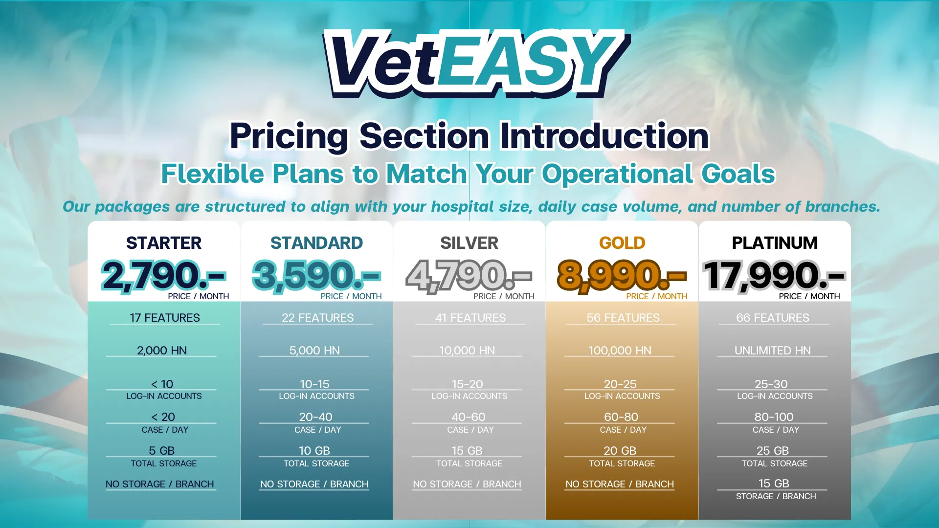 Our packages are designed based on your management needs, hospital size, and number of branches.